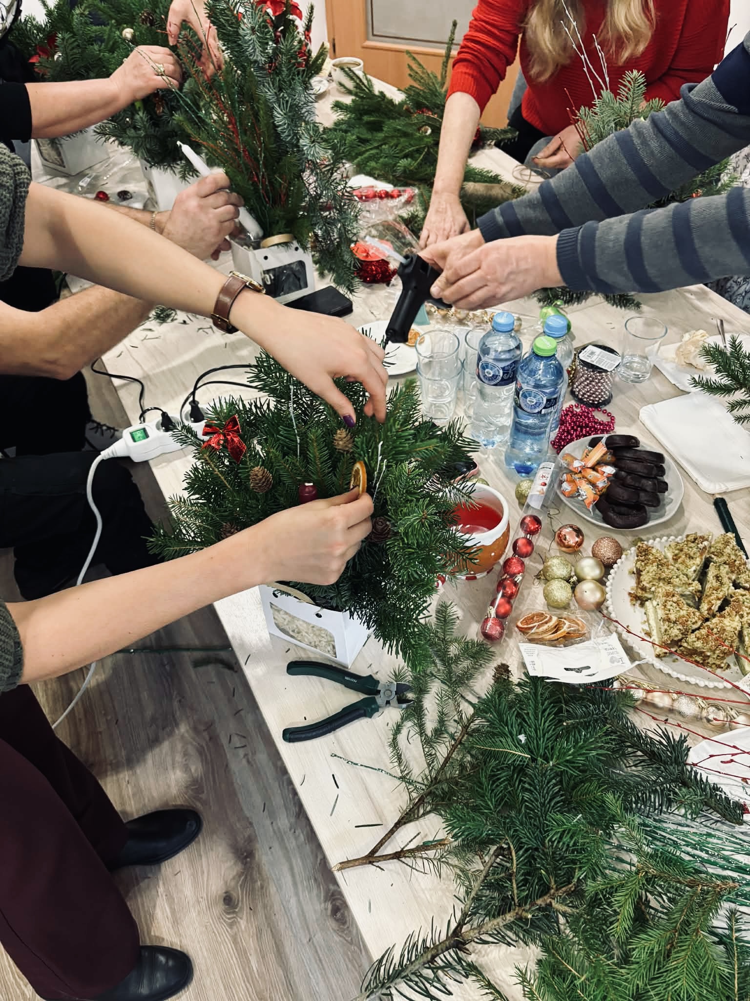 Członkowie grupy są doskonałym przykładem na to, jak wiele można stworzyć w kolektywie… Podczas spotkania okazało się, że poza umiejętnościami słuchania i wspierania nasi opiekunowie zastępczy mają niezwykłe zdolności manualne i tworzą przepiękne stroiki świąteczne.